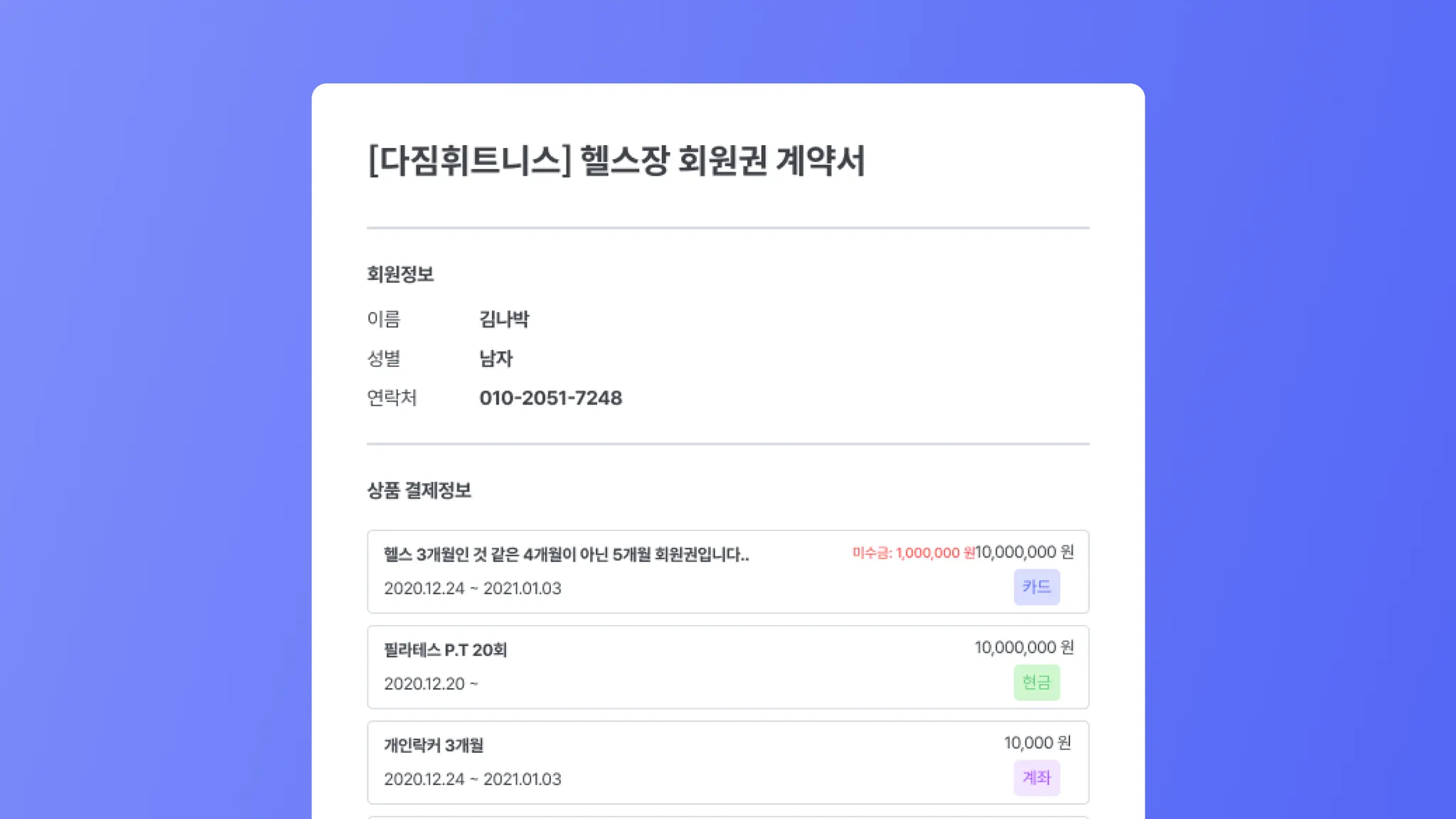 회원관리 프로그램 다짐매니저